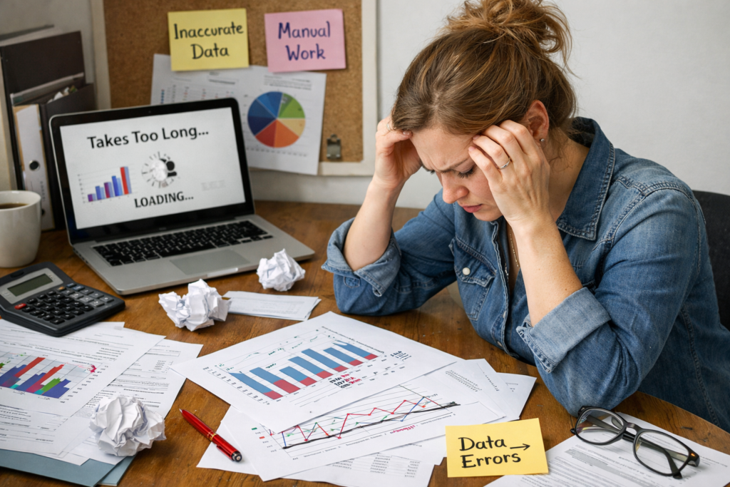 The process of creating charts requires time and effort and technical skills when people use traditional spreadsheet software and design software to create their charts. Users must choose the appropriate chart type for their data needs while performing data cleaning and axis labeling and visual element modifications. The following challenges occur frequently in work situations: